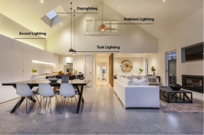 Lighting memiliki jenis-jenis yang berbeda. Semuanya itu disesuaikan dengan fungsinya masing-masing. Ada 3 jenis pencahayaan yang dapat diaplikasikan untuk menciptakan suasana yang diinginkan pada suatu ruangan yaitu ambient, task dan accent. Pemakaian lampu-lampu tersebut disesuaikan dengan apa yang dibutuhkan. Pemakaian general light dengan task lighting tentu saja berbeda.